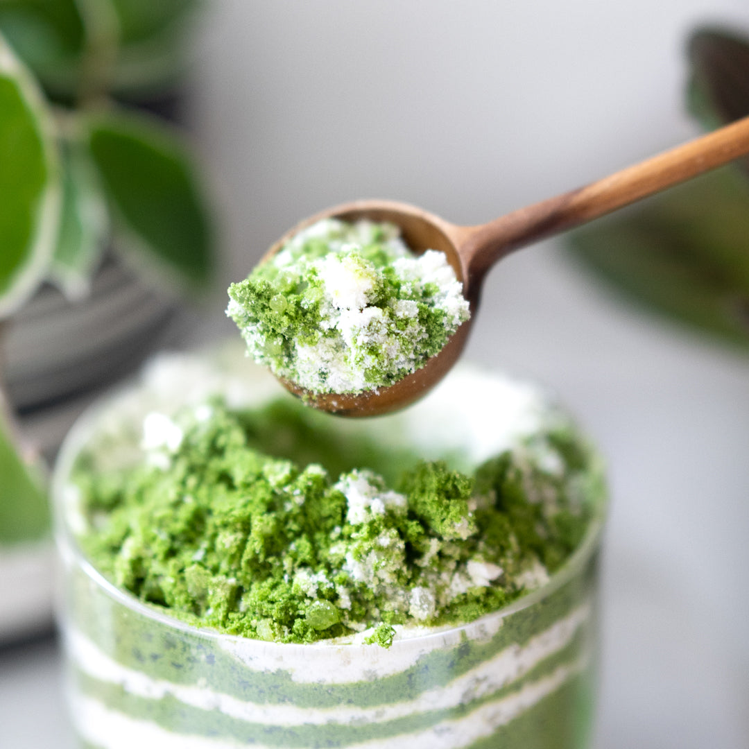 - Begin layering your Matcha Latte Milk Bath into airtight containers. Note: Natural oxidation occurs once matcha is exposed to oxygen and light. Use your milk bath as soon as possible :)
