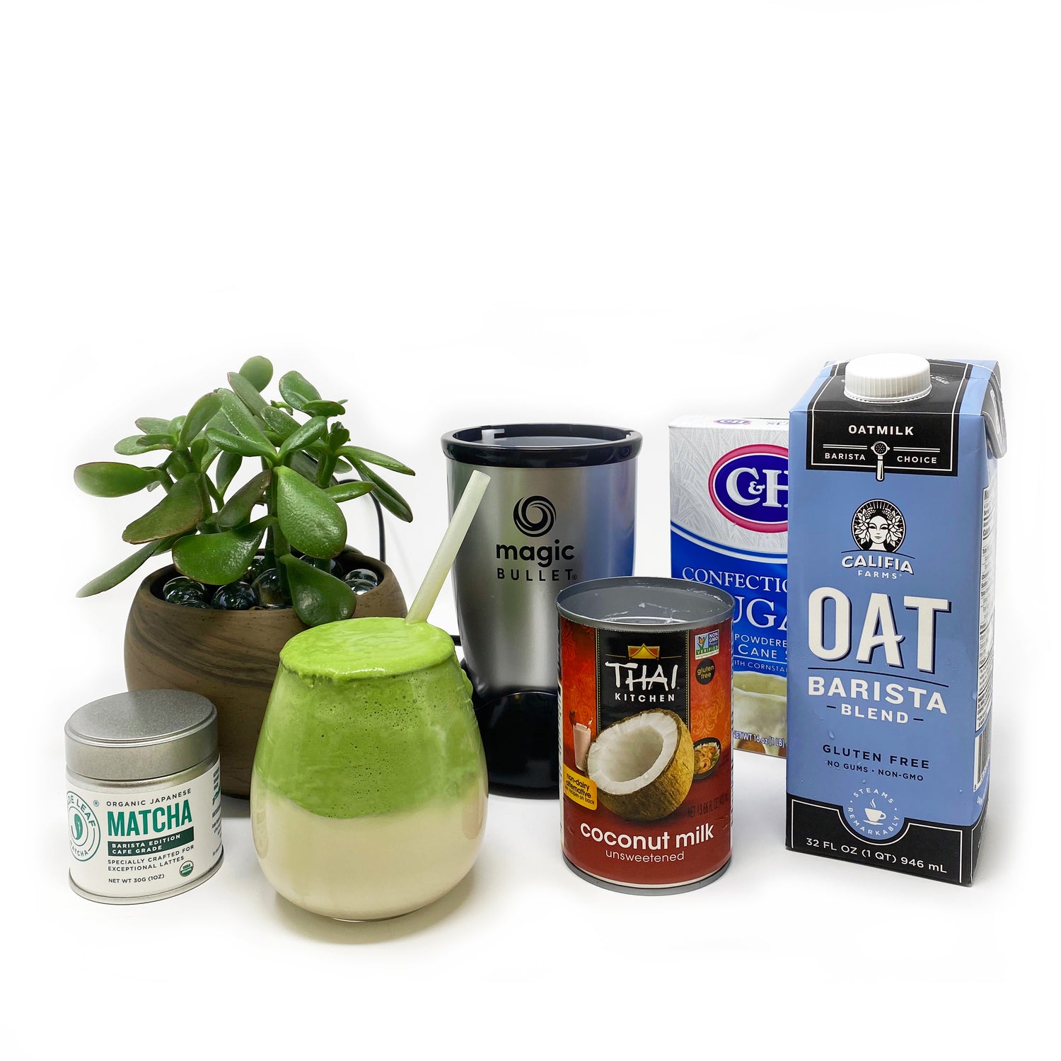 Refrigerate the can of coconut milk/cream the night before so it solidifies. Then scoop about half the can into your bullet, and add a generous splash of oat milk to provide some blending liquid. Lastly add the matcha and sugar on top. Blend for a good 30 seconds until the mixture whips up (you may need to add more oat milk if it does not blend at first).