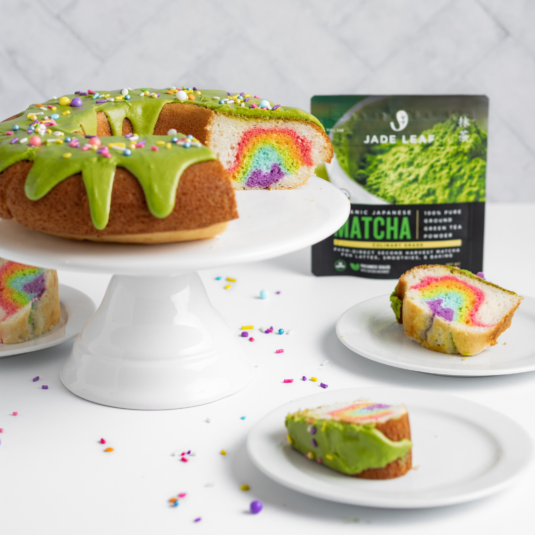 The inspiration for this rainbow recipe comes from the rainbow queen Sam at Buttermilk by Sam. We loved her original recipe - “Hidden Rainbow Bundt Cake” - and just had to put our own matcha spin on it for pride month!