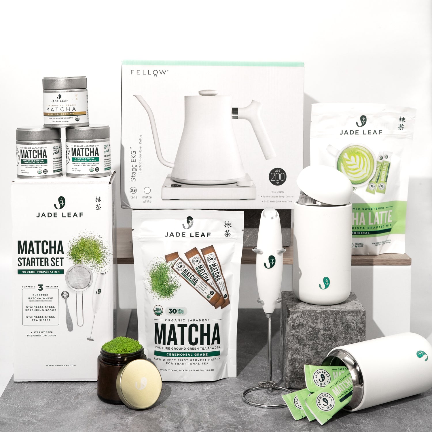 WIN the ultimate matcha setup to make matcha like the boss you are! One lucky winner will win a sweet prize that include a Fellow EKG Electric Kettle, Custom Fellow Carter Move Mug, and a 6-month supply of Jade Leaf Matcha (valued at $339)!