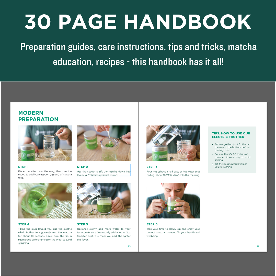 Additive-free and crafted from pure, shade-grown organic green tea leaves, ground into ultra-fine powder to create high-quality matcha bursting with flavor and nutrients.
