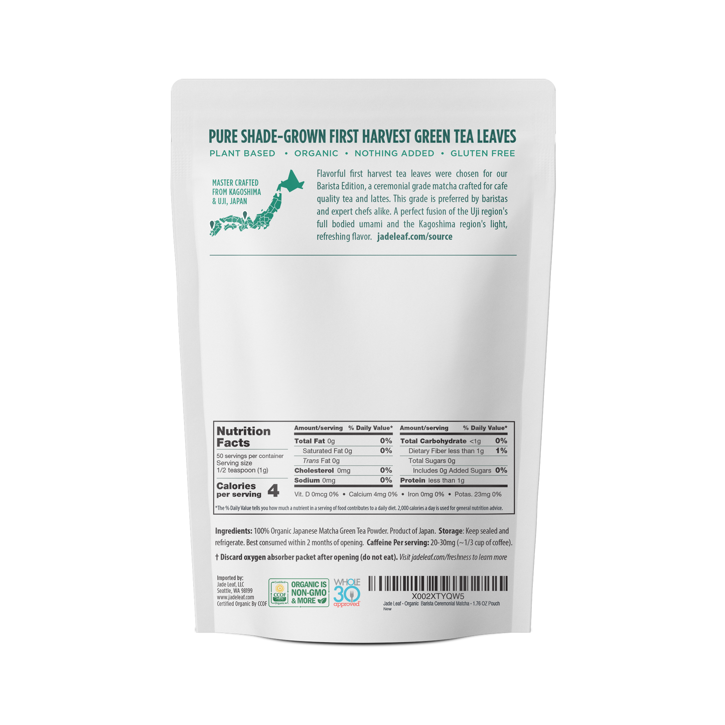 • Certifications: USDA Organic, Japanese Matcha, Farm-Direct, Vegan, Gluten-Free, Dairy-Free
