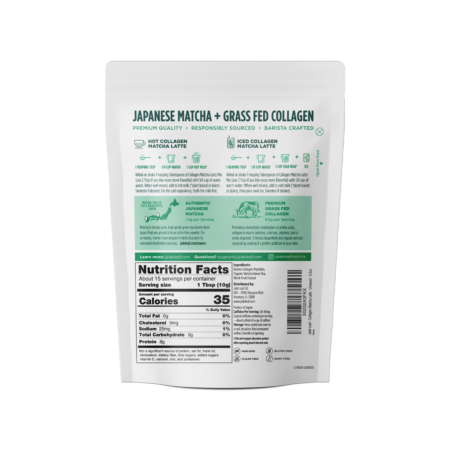 Used For: Hot or Iced Unsweetened Collagen Matcha Lattes