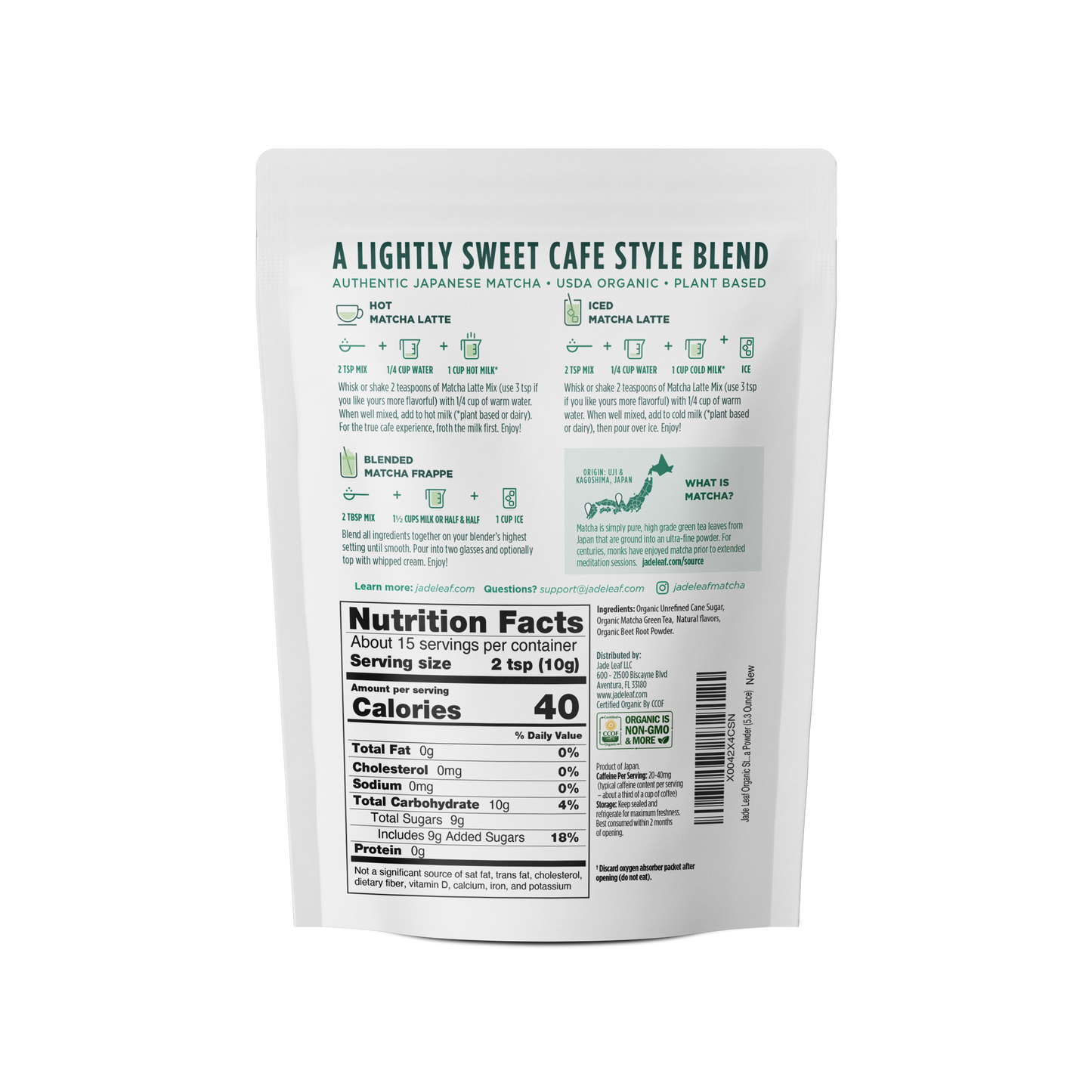 Original Latte Mix - Organic Unrefined Cane Sugar, Organic Japanese Matcha Green Tea.