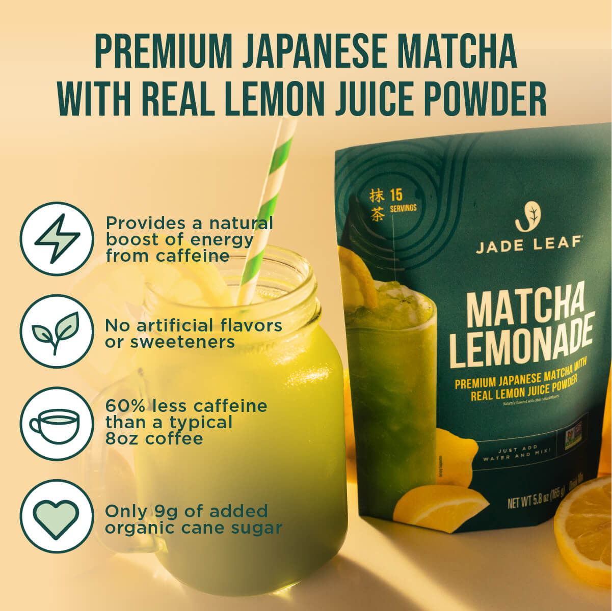 Refreshing matcha lemonade, made easy! Enjoy cafe style matcha lemonade with our lightly sweetened matcha lemonade mix.