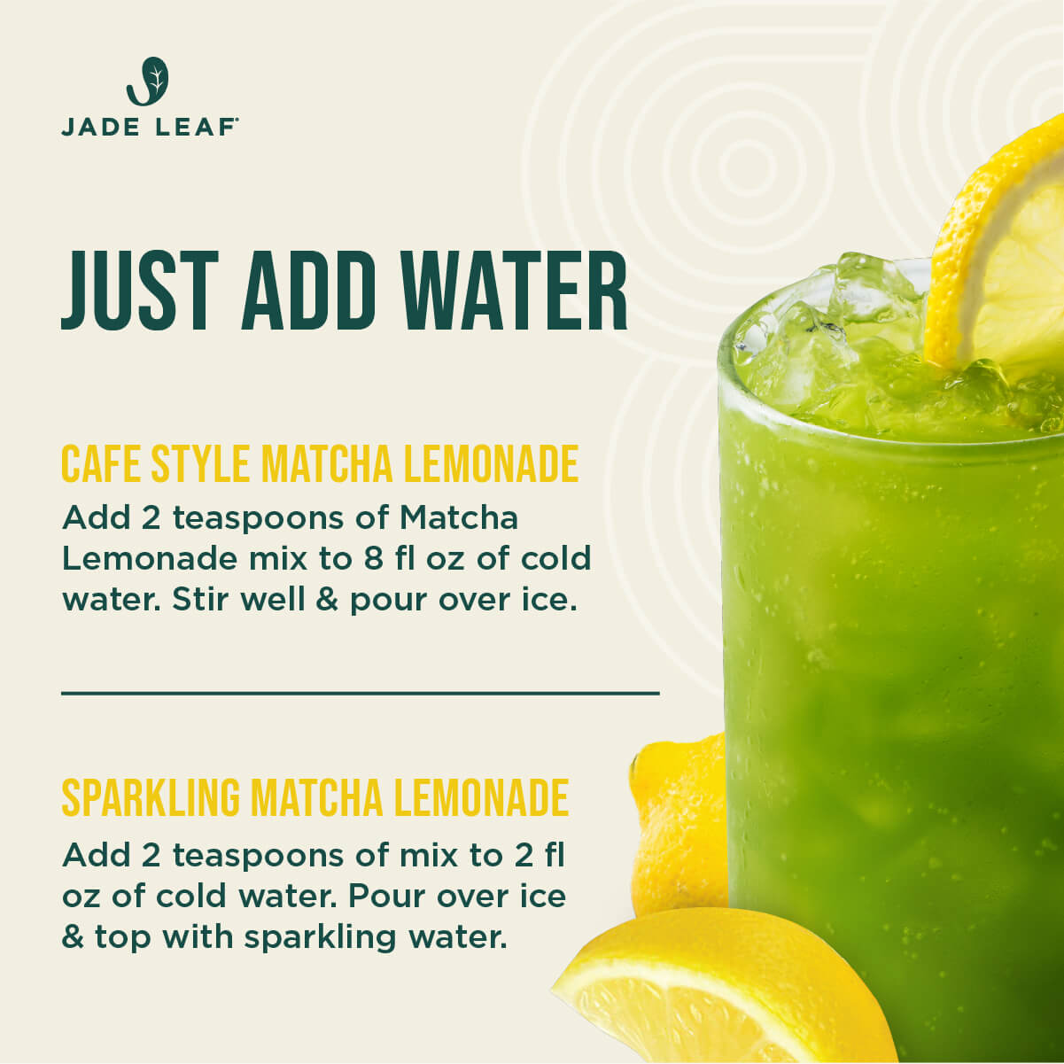 Sparkling Matcha Lemonade: add 2 teaspoons of mix to 2 fl oz of cold water. Pour over ice & top with sparkling water.